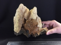 Hezká ukázka pseudomorfózy sekundárního křemene porostlého pyritem po kalcitu. Důl Roata, Cavnic, Rumunsko, rok 1988.
